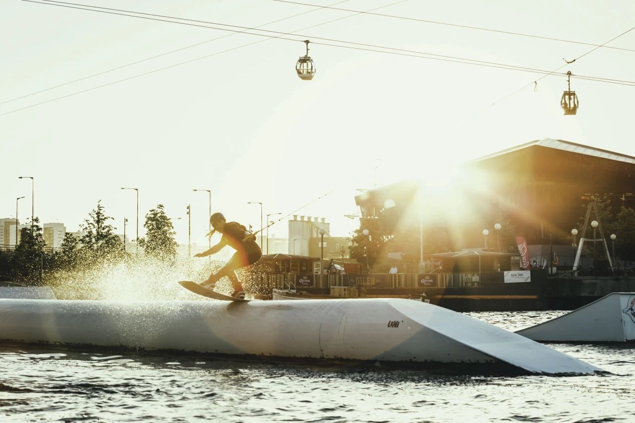 与此同时,皇家码头以水岸生活为媒,让艺术、运动与人文体验融为一体。Summer Splash 夏日狂欢活动以天然水域为舞台,提供尾波滑水、桨板冲浪等体验,令滨水生活从视觉享受跃升为日常沉浸。Ensemble Festival音乐节举办马戏团表演《拥抱》(HUG)、《等待之歌》(Waiting Song)空中飞人二重唱,将码头水岸幻化为无界剧场,水光与灵感交织成一场城市艺术的夏日盛典。